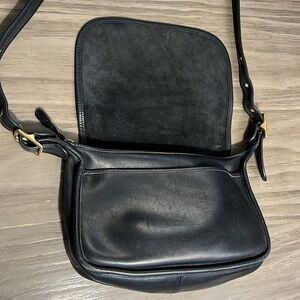VTG Coach Classic black leather shoulder/crossbody saddle bag with gold tone hardware. 9951
