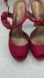 Red leather on the strap and heels, copper leather on the insoles. Red Silk Rosettes on the straps and on the top of the vamp. These are gorgeous, not sure if I still have the box.