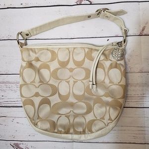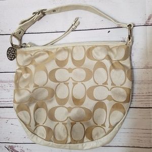 COACH ALI SIGNATURE CANVAS LEATHER HOBO BAG