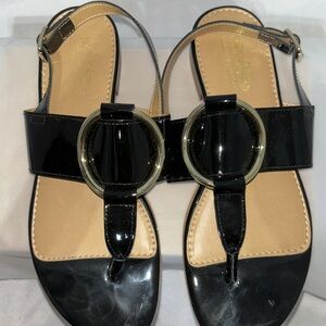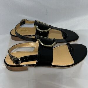 COACH AND FOUR Black Patent Leather Buckle Front Strap Sandal Size 6.5
