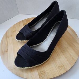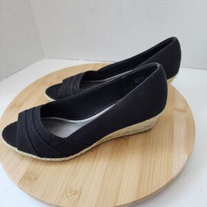 COACH AND FOUR Womens Open Peep Toe Espadrille Black Canvas Sandals Sz 8.5