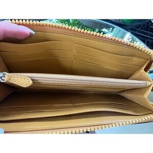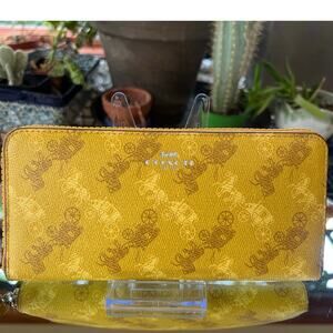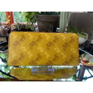 COACH Accordion Zip Wallet with Horse and Carriage Print in Yellow
