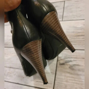 COACH Aliza black waxy leather ankle high heel pull-on classic booties Women's 8
