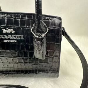 New With Tags, COACH Andrea Carryall Bag Crossbody In Crocodile-embossed Leather CR105 Black from smoke and pet free environment.