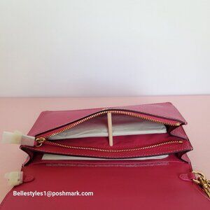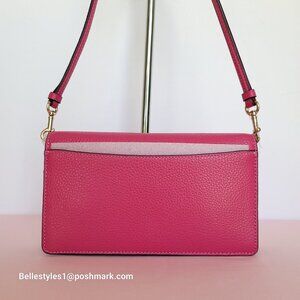 BRAND NEW WITH TAGS. Bold Pink color. A compact ultra chic Fold-over Clutch Crossbody with an interchangeable chain strap to instantly change the look of your bag from daily wear crossbody to a sophisticated evening bag with enough room for your small essentials. Features a back slip pocket for easy access and added convenience. Crafted from Refined pebbled leather.