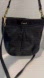Excellent used condition: some minor wear and tiny spot on interior lining. This authentic black leather crossbody Coach bag features stylish python-embossed trim, zip-top closure, fabric lining, outside zip pocket and one interior zip and two interior slip pockets. Gold tone hardware. Handle with 9 1/2" drop plus a longer strap for shoulder or crossbody wear. Measures: 12” H x 11.5" W x 2.5" D.
