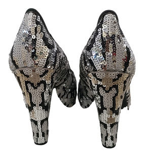 All over sequins black, silver, white on leather upper