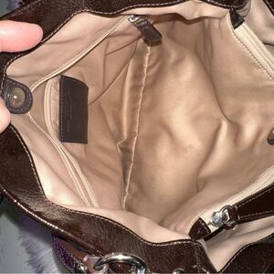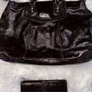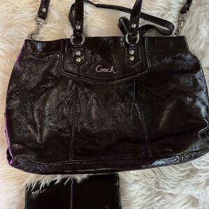 COACH Ashley chocolate patten leather bag, and matching wallet EUC