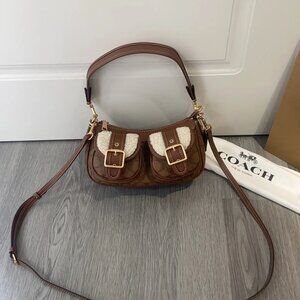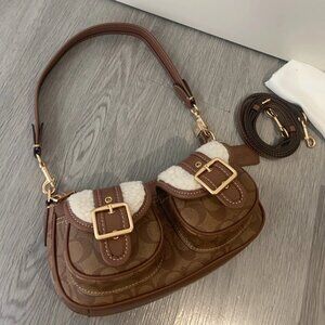 COACH Ashton Baguette Bag In Signature Canvas Tan/Natural CY658 Outlet NEW