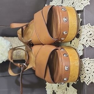 Good used condition Coach Studded platform clog sandles size 10B..has small stain on leather shown in pics. 3" platform.