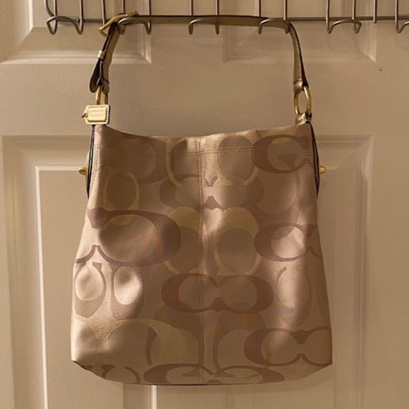COACH: BEIGE & GOLD SHOULDER BAG-MEDIUM SIZE