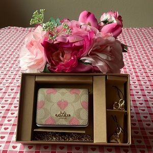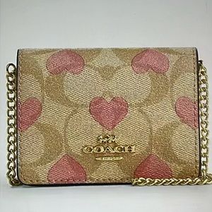 🩷 COACH BOXED MINI WALLET ON A CHAIN IN SIGNATURE CANVAS WITH HEART PRINT 🩷