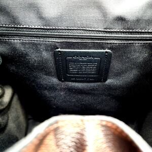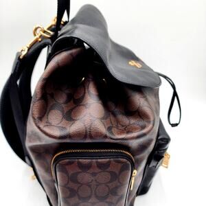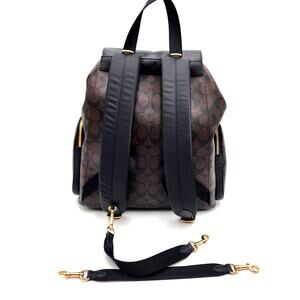 Beautiful! Coach Backpack/Diaper Bag/Baby Backpack in Signature Coach Canvas. Bag is in very good condition. 1 callout on the inner flap of the bag, small white residue spot. See picture. Measurements: Length 12.5" x Height 14" x Width 6". Materials: Nylon and refined leather, Fabric Lining. Adjustable shoulder straps. Two stroller attachment straps, Drawstring closure. Outside zip pocket. Inside zip pocket. Inside multifunction pocket. Comes with Coach changing pad. MSRP $550