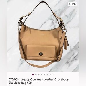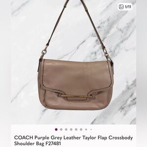 Beautiful curated set of authentic Coach bags and one wallet, all genuine leather or jacquard pieces from the 2000s and or Y2K era. Each shows gentle vintage wear but remains clean, functional, and full of life. This bundle includes a stunning variety of Coach classics: the Gallery Embossed Plum Patent Tote F19818 (2012) with glossy plum finish and gold hardware, the Bleeker Cream and Brown Leather Crossbody F10938 in supple two-tone leather, the Taylor Flap Crossbody F27481 in soft purple-grey leather with magnetic closure, the Legacy Courtney Leather Crossbody from the Y2K era in smooth tan leather with tassel accents, the Ashley Signature C Shoulder Bag F20111 in brown jacquard with leather trim, and a Signature Canvas & Leather Continental Wallet in tan and brown.