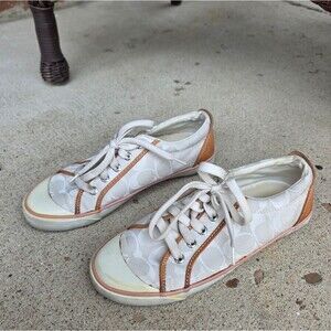 COACH Barrett Signature C Sneakers in White Tan Women's Size 7.5B Classic Skater
