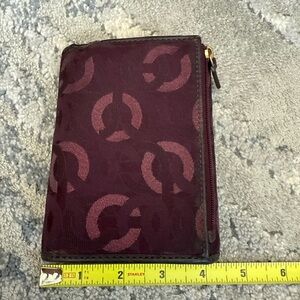 COACH Bifold Wallet Signature C Logo Purple Shimmer Flaws