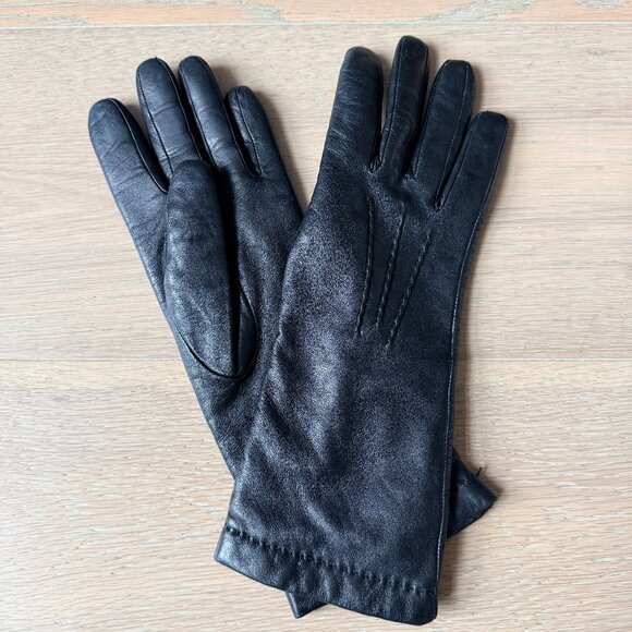 COACH Black 100% Leather Gloves Cashmere Lined Size 7 Gorgeous Vintage