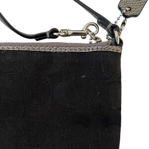 COACH Black Canvas Zip Wallet Purse Wristlet Metallic Pewter Trim F64643