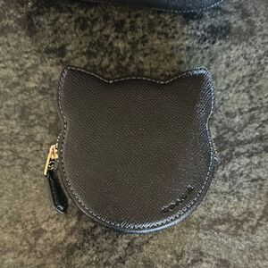Adorable black cat coin purse. Features cute cat face design. Perfect for small essentials.