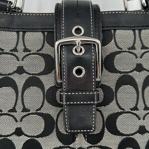 COACH Black & Gray Hampton Signature C Canvas Shoulder Bag Satchel Purse #F12643