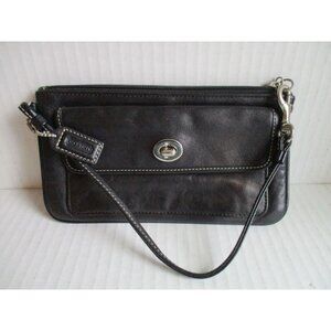 *COACH Black Leather Clutch Wristlet Zip Top Turn Key Pocket Closure