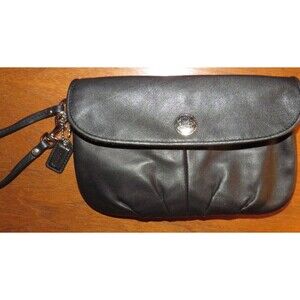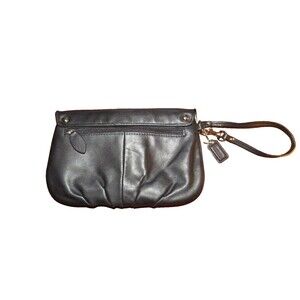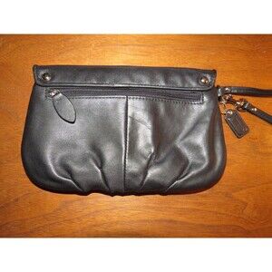 COACH Black Leather Pleated Flap Wristlet Clutch.