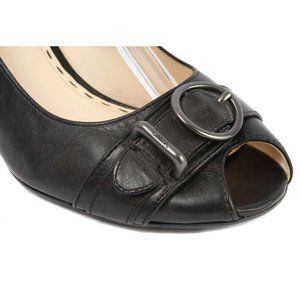 COACH Black Leather Tatiana Peep Toe Buckle Accent Pumps Size 8 1/2