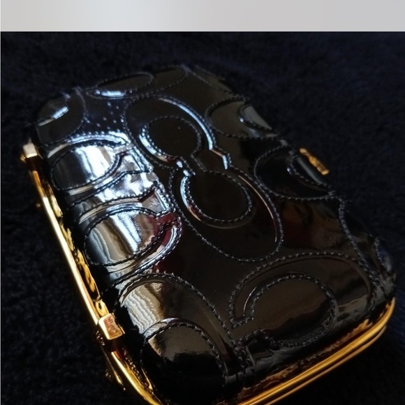 COACH Black Patent Leather Raised C Hard Shell Turnlock Clutch bag purse