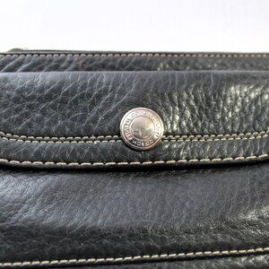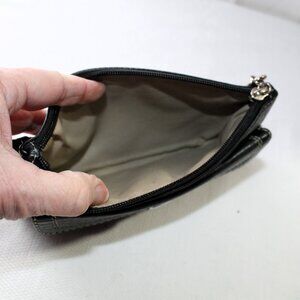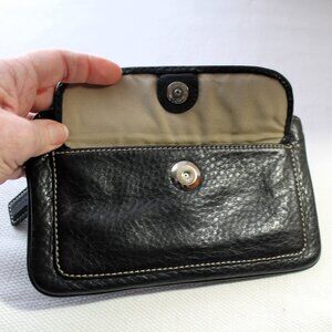 COACH black pebbled leather wristlet with zipper closure, front snap pocket, Coach hang tag