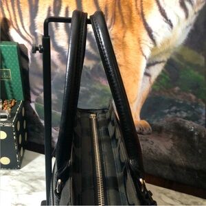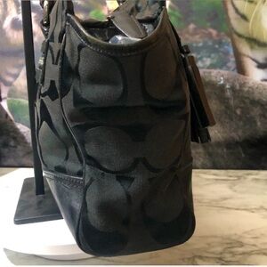 This COACH Black Signature “C” Canvas and Leather Handbag is in Good Used Condition (EmGUC): Previously lovingly cared for; but this is a preloved (used) item, some normal and minimal wear is expected; beautiful bag, exterior shows signs of wear: fading, scratches, and tassles peeling. Depending on device used, color may vary. Review pics as they’re part of the description. Sold as is, no refunds. All auction bids/wins are final, no cancellations.