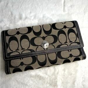 COACH Black Signature Canvas Wallet Black Preloved in good condition with small wears on the interior. 7.5" x 4.5"