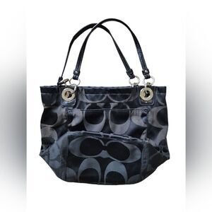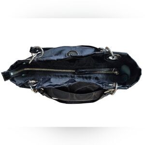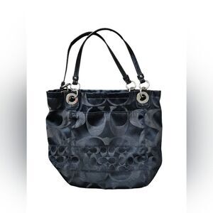 Alex Signature Black Canvas Double Handle Zipper Bucket Tote Shoulder Bag. Features dual handles and silver-tone hardware.