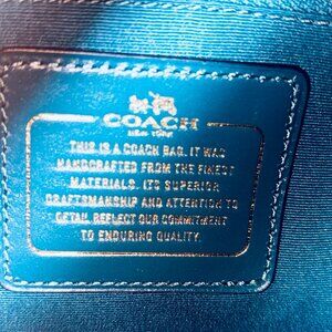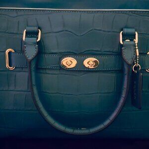 Turn heads with this stunning teal crocodile-embossed beauty, kissed with gold accents. Sheโs pristine, polished, and comes tucked in her Coach dust bagโno scuffs, no tears, just pure glam. Perfectly pairs with matching gown & shoes for a total diva moment. ๐