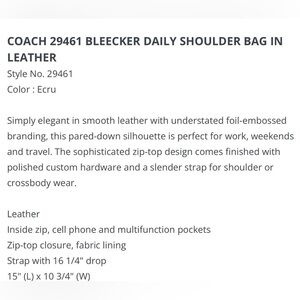 COACH Bleecker Daily Shoulder Bag Style 29461 in Ecru Leather