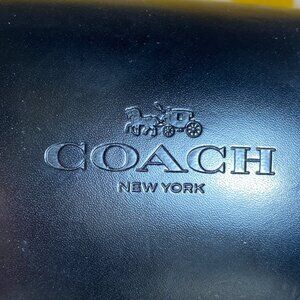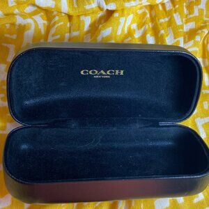 COACH New York Logo Black Faux Leather Eyeglass Case, Hard Clam Shell, Hinged, PreOwned, w/new unused Coach Lens Cloth, Size: 6.5" Long x 2" Deep