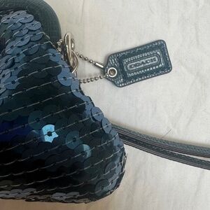 COACH Blue Sequin Wristlet Clutch