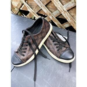 COACH Brown Leather Signature Logo Low Top Lace Up Sneakers Size 9B Women