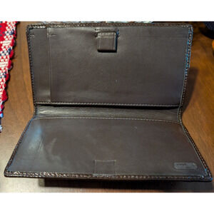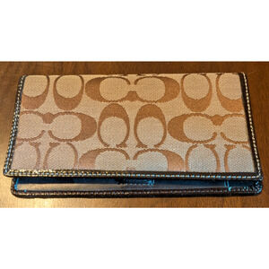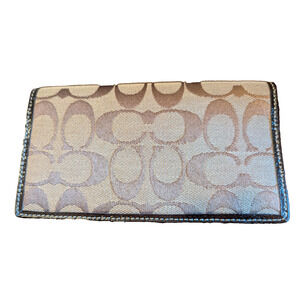 COACH Brown Monogram Canvas Leather Trim Checkbook Holder EUC