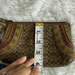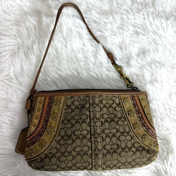 COACH Brown Signature Stub Suede Canvas Wristlet