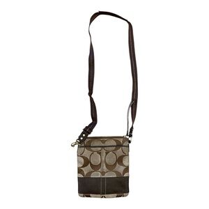 Stylish crossbody bag with a brown and tan design. Perfect for everyday use.