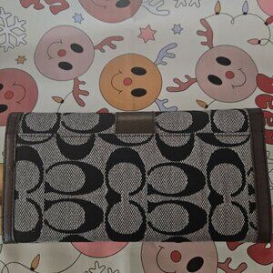 Coach brown and tan monogram signature canvas and leather wallet.