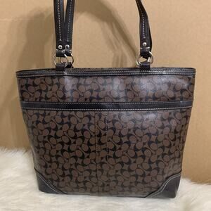 COACH Brown/Black CHELSEA Heritage Stripe Bias Signature N/S PVC Tote F15137