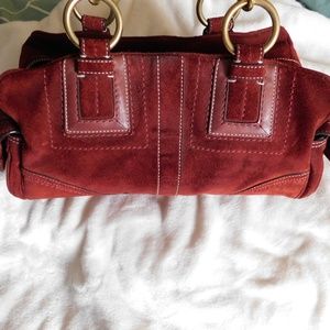 Suede burgundy coach handbag with brass/gold hardware. In like-new condition.