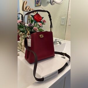 COACH C2590 Willow Bucket bag in colorblock Brick Red Multi NWT