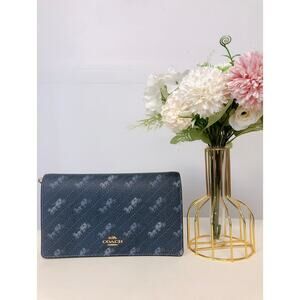Coach C4208 Anna Foldover Crossbody Clutch With Horse And Carriage Dot Print IN DENIM