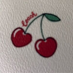🍒❤️🍒 Stylish COACH NOTEBOOK with cherry HEART print. Features red cherries and green leaves on a white background. Perfect for organizing your schedule.❤️🍒❤️