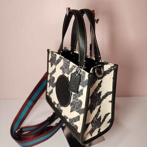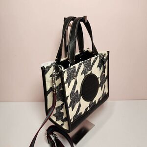 COACH CJ623 Dempsey Tote 22 Canvas & Leather Houndstooth Print Patch Cream