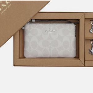 COACH CN044 Boxed Corner Zip Wristlet In Signature Canvas Glacier White