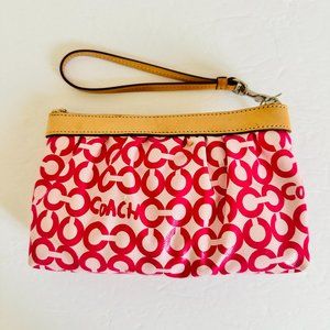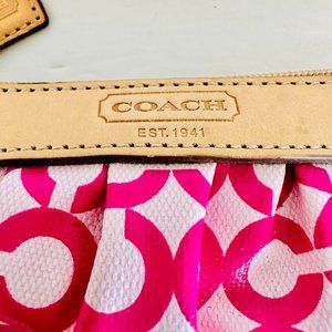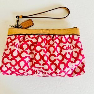 COACH COATED CANVAS AND LEATHER WRISTLET CLUTCH BARBIECORE