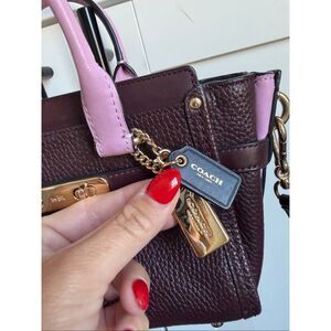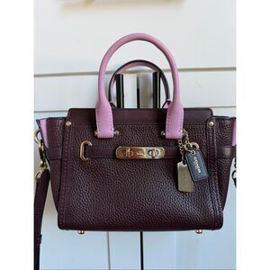 COACH COLORBLOCK OXBLOOD/PINK SWAGGER 20 IN PEBBLED LEATHER (35954)